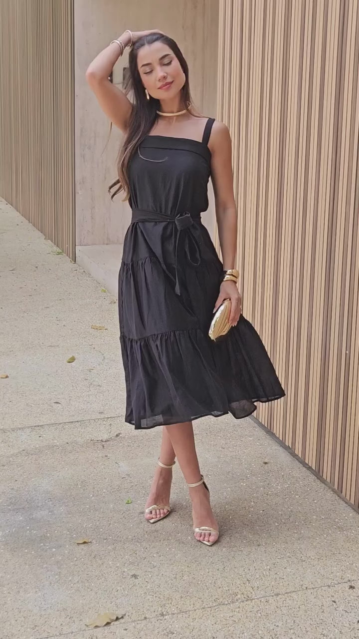 Vestido Felicia Com Alça e Faixa - Preto